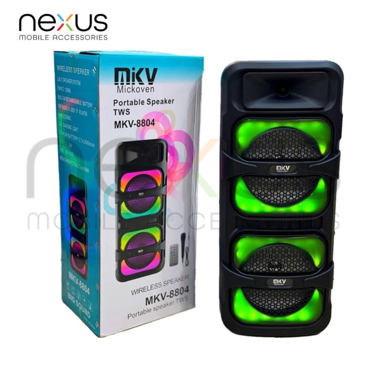 اسپیکر قابل حمل Mickoven MKV-8804 با توان قدرتمند 1200 وات و باتری داخلی 4000 میلیآمپر، انتخابی عالی برای مهمانیها و دورهمیهاست. این اسپیکر با صدای شفاف و بیس قوی، تجربهای متفاوت از موسیقی به شما میدهد. همراه با میکروفون سیمی برای کارائوکه و ریموت کنترل برای مدیریت راحتتر طراحی شده است. همچنین از کارت حافظه TF/SD پشتیبانی میکند تا همیشه دسترسی به آهنگهای دلخواهتان داشته باشید