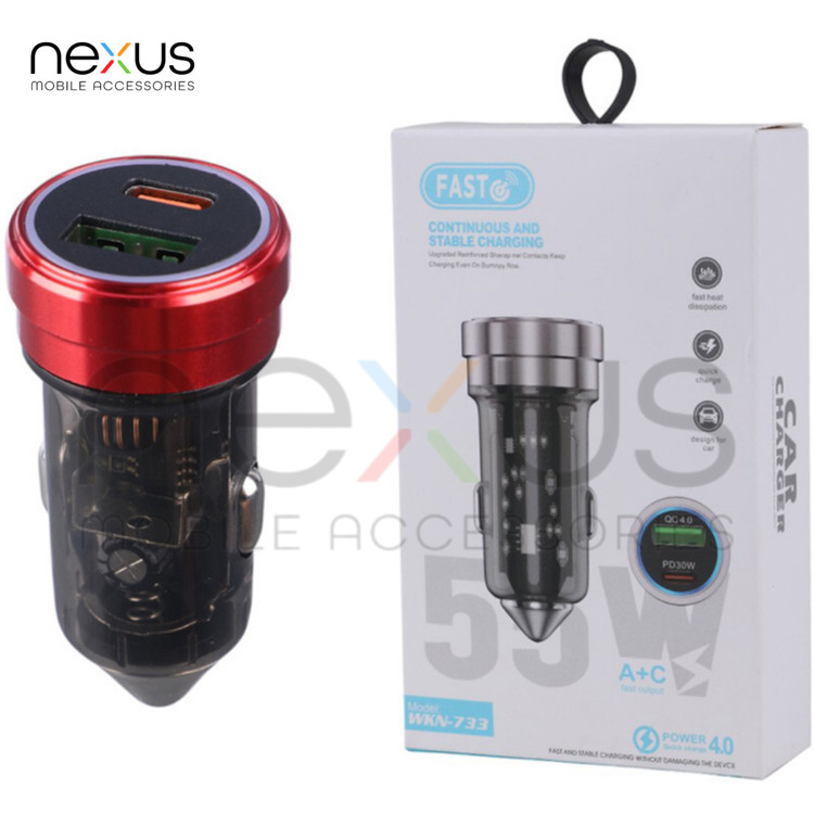 شارژر فندکی فست شارژ خودرو مدل WKN-733 با حداکثر توان خروجی 30 وات