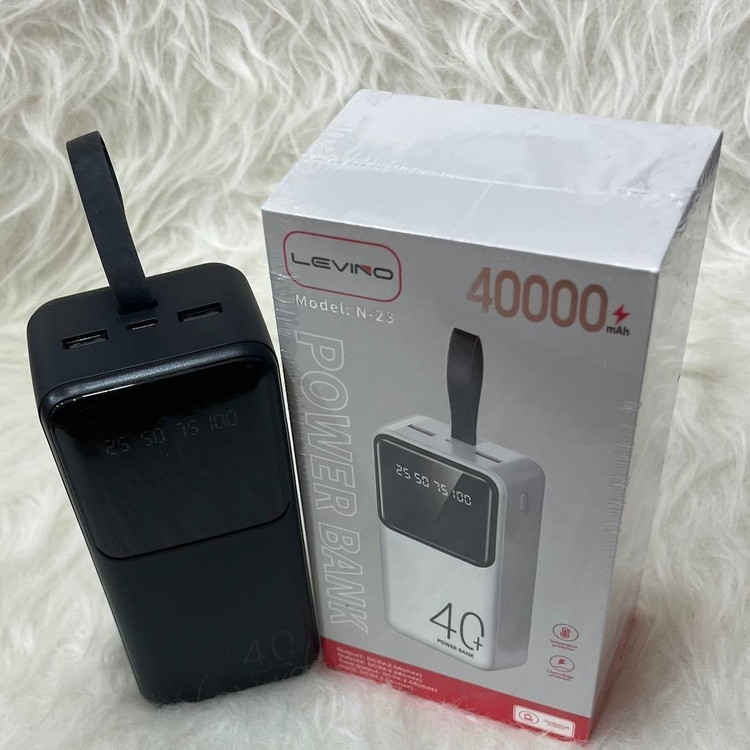 پاوربانک LEVINO N-23 40000mAh: پاوربانک 40000 میلی آمپر با فست شارژ، 3 خروجی، چراغ قوه، نمایشگر LED، شارژ همزمان و ظرفیت واقعی 24000mAh