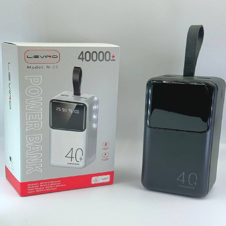 پاوربانک LEVINO N-23 40000mAh: پاوربانک 40000 میلی آمپر با فست شارژ، 3 خروجی، چراغ قوه، نمایشگر LED، شارژ همزمان و ظرفیت واقعی 24000mAh